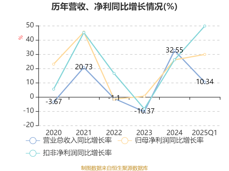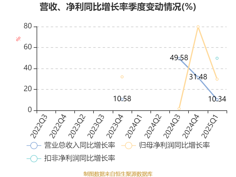 资产重大变化方面,截至2025年一季度末,公司货币资金较上年末减少6.94%,占公司总资产比重下降2.5个百分点;应收票据及应收账款较上年末增加19.6%,占公司总资产比重上升1.7个百分点;固定资产较上年末减少1.18%,占公司总资产比重下降1.18个百分点;在建工程合计较上年末增加12.3%,占公司总资产比重上升0.86个百分点。
