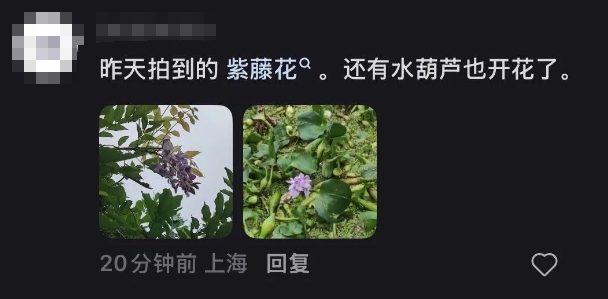 在上海一些公园和小区里春天的玉兰花又开了桃花、紫藤又开了荷花超长待机……就连水葫芦都开花了